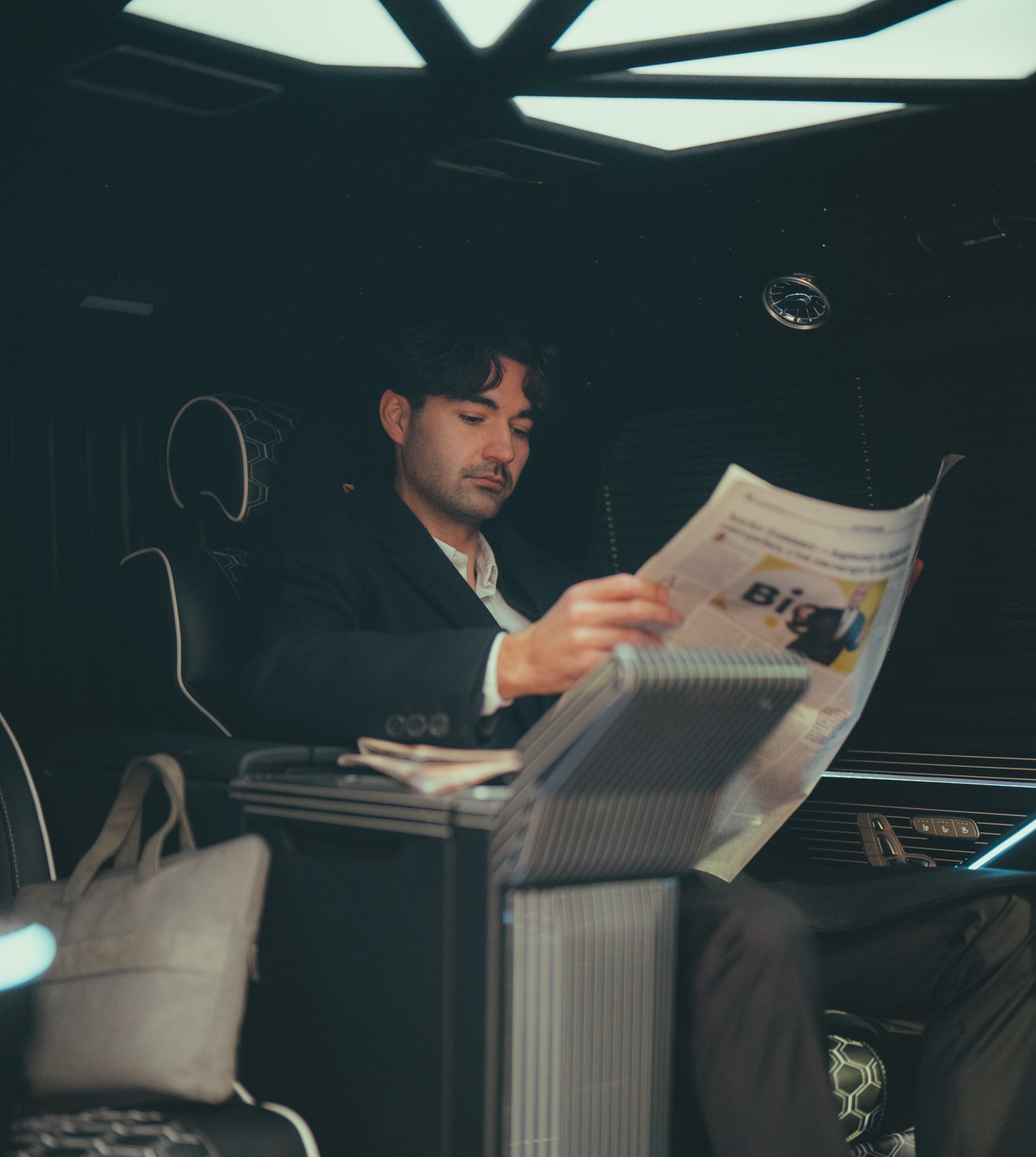 Vista360° propose plusieurs modèles de vans, chacun offrant un niveau de prestations unique, tout en partageant une base d'équipements communs. Conçus pour offrir une expérience personnalisée, nos vans allient confort, luxe et services sur mesure, garantissant un trajet inoubliable.